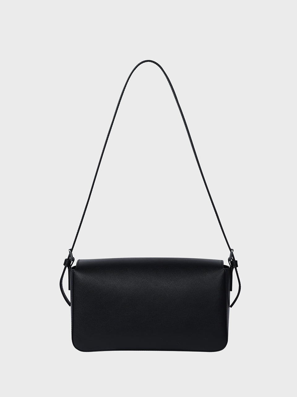 A sculptural leather shoulder bag defined by an architectural rectangular silhouette.